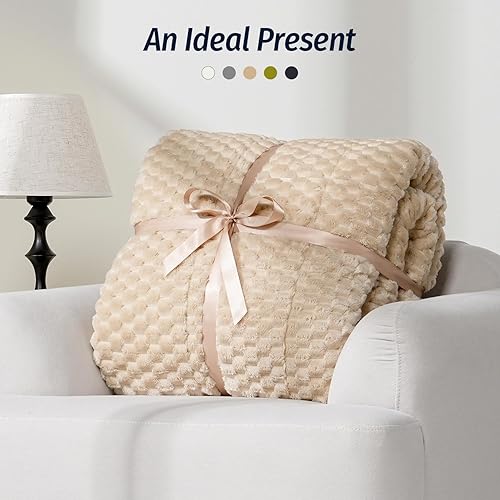 Wemore Fleece Weighted Blanket for Adults (60" x 80" 15lbs, Cream White), Dual Sided Cozy Soft Sherpa Heavy Blanket with 3D Imitation Turtle Shell Warm Jacquard Flannel for Couch and Bed(Khaki,48" x 72" 15lbs)