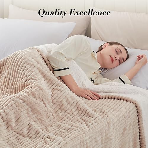 【SOFTNESS & ENHANCED DURABILITY】 The 280 GSM luxury ribbed flannel top and 200 GSM thick sherpa both provide soft touch on each side, which bring you more warmth. This heated throw blanket can relax your body, and relieve fatigue throughout the day