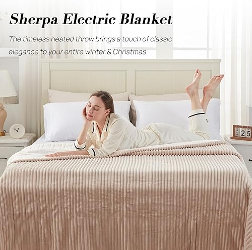 Westinghouse Heated Throw Blanket, Soft Flannel Sherpa Electric Throw with 6 Heating Levels & 2-10 Hours Auto Shut Off, Fast Heating & ETL Certification, Machine Washable, 50x60 Inch, Light Grey(Beige,Full 72"x84")
