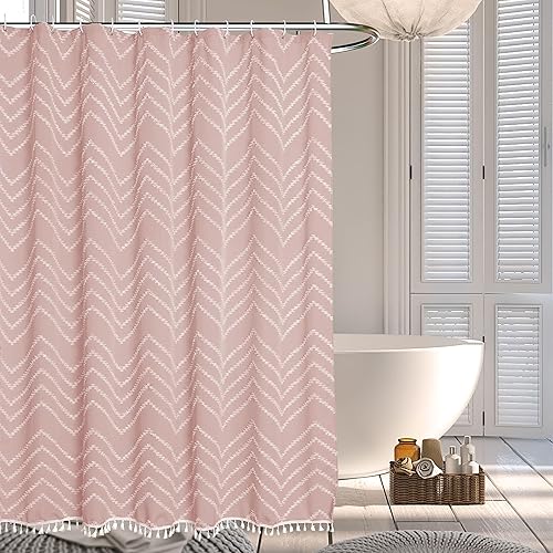 White Shower Curtain Fabric Boho Shower Curtain Cloth Textured Tufted Chevron Elegant Shower Curtains Waterproof for Bathroom 72" x 72"(A Pink,60"W x 72"L (Pack of 1))