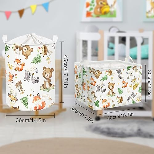 Clastyle Cute Woodland Animals Shelf Basket Bear Fox Squirrel Fir Tree for Nursery Storage Bin Rectangle Clothes Books Toy Storage Cube, 36L