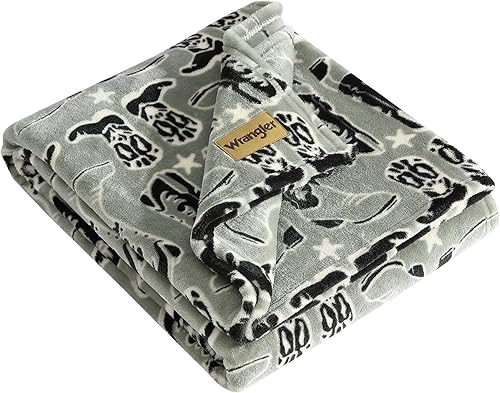 FEATURES: This statement Wrangler Jesse ultra plush throw features a unique authentic Wrangler design in black and neutrals. Crafted with 100% polyester for a super soft and lightweight feel, ideal for year round use. Layers perfectly with Wrangler bedding, sold separately.