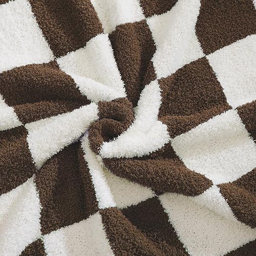WRENSONGE Checkered Throw Blanket, Sage Green Soft Cozy Fluffy Hand Made Throw Blankets for Couch, Sofa, Chair, Bed, Camping, Picnic, Travel Lightweight Bed Blankets for Women Mothers Birthday Gifts(Coffee,Throw-XL(50"x 70"))
