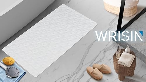 WRISIN Non Slip Bathtub Mat for Bath Tub Shower - Natural Rubber Mat with 241 Suction Cups - Soft Bathroom Safety Mat - Unique Diamond Pattern - Fatigue Relief - Machine Washable - 16 × 28 Inch(White,35" x 17" (Rectangular))