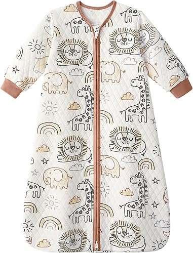 1.0 Tog Sleep Sack with Sleeves: 1.0 Tog sleep sack is perfect for all-year-around, keeps baby cozy and comfortable in A/C room or restaurant, when travelling or napping. What's more, this long sleeve sleep sack with elastic cuff can adjust tightness and regulate temperature, keep baby warm and comfortable.