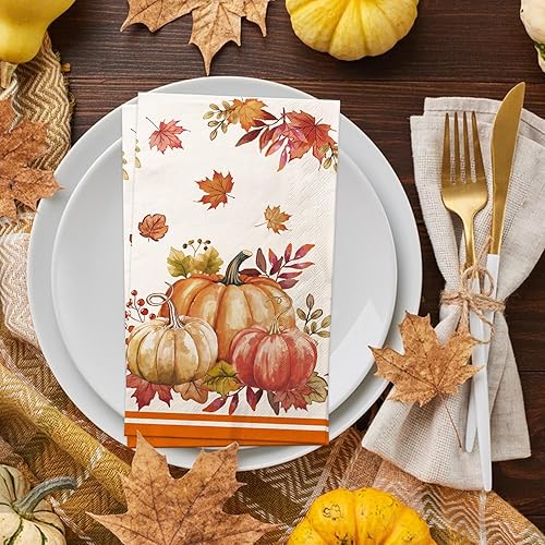 100 Pcs Fall Paper Napkins, Thanksgiving Guest Napkins, Autumn Watercolor Pumpkin Guests Disposable Hand Towels for Harvest Home Dinner Kitchen Bathroom Decor