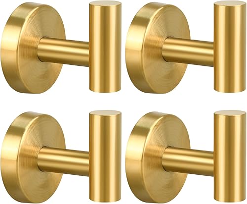 2 Pack Brushed Nickel Towel Hooks, SUS304 Stainless Steel Bathroom Hooks for Bedroom Kitchen Hotel Office(4 Pack Brushed Golden)