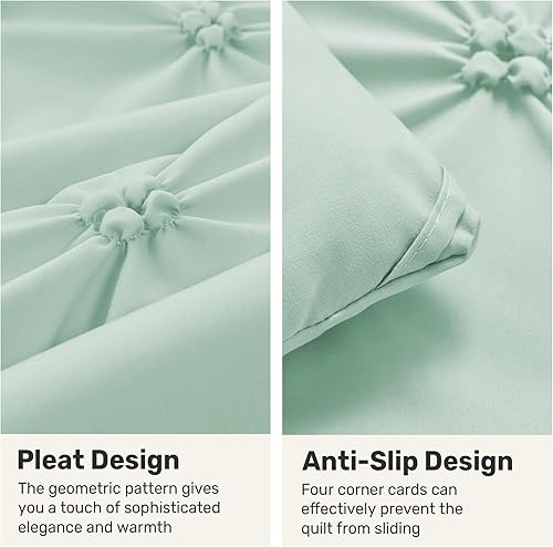 UNIKOME Queen Comforter Set White - WarmSoft Pintuck Down Alternative Bedding Set for Winter, All Seasons, 3 Pieces Pinch Pleat Solid Bed Set with Comforter, 2 Pillowcases(11 Sage Green,King(104"x92"))